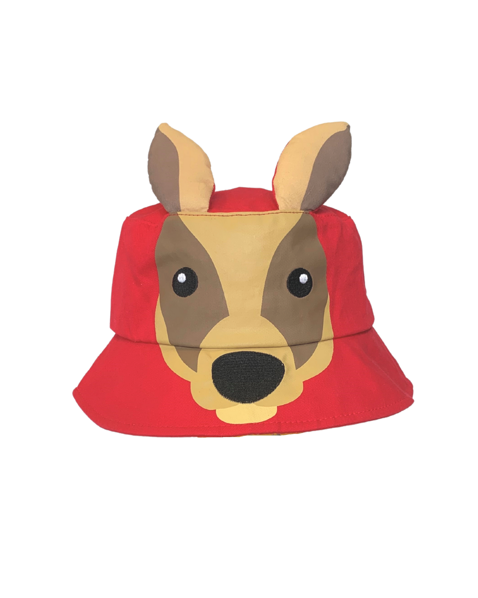 Hop alongside with a kangaroo wearing this kids cotton bucket hat.