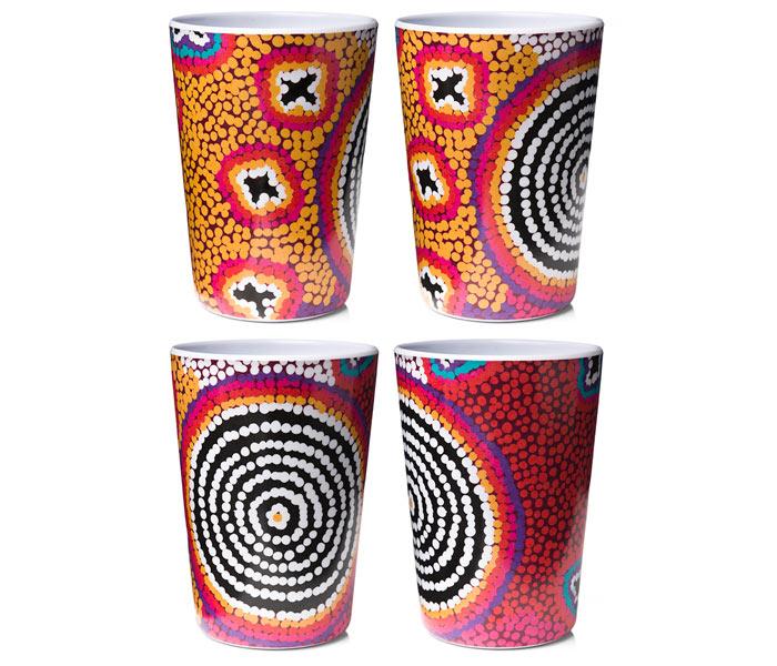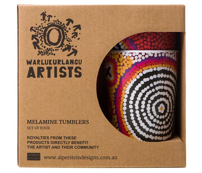 Melamine Tumblers (Set 4) comes packaged with information about the artist and artwork.